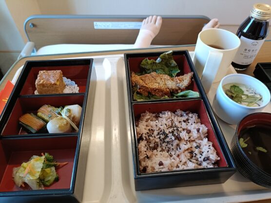 写真は出産後のお祝い膳。キャロットケーキがうまかった。